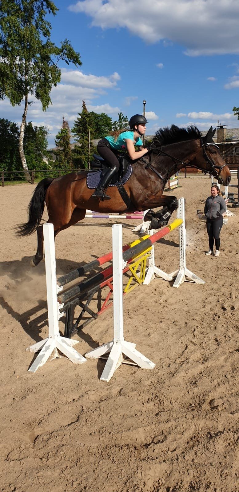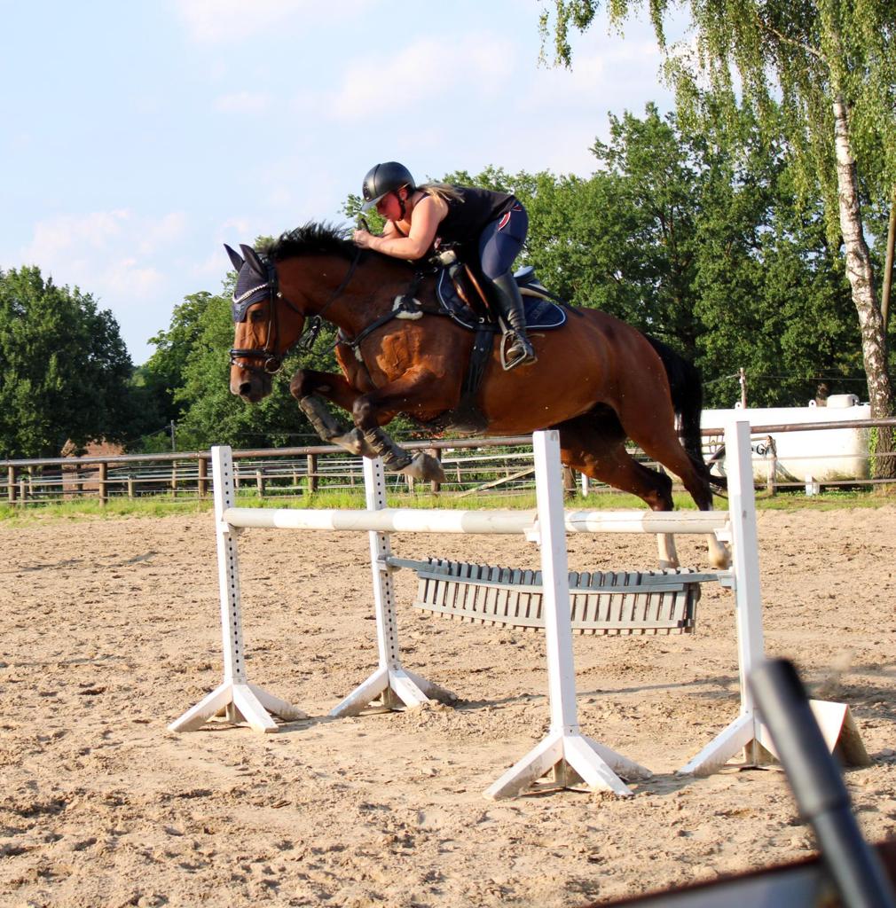 Wer die Dressur beherrscht, kann auch einen Schritt weiter gehen, in das Stangen-/Cavalletti-und Springtraining. Hier kommen die Bodenstangen zum Einsatz, wo dem Reiter der leichte Sitz vermittelt wird.