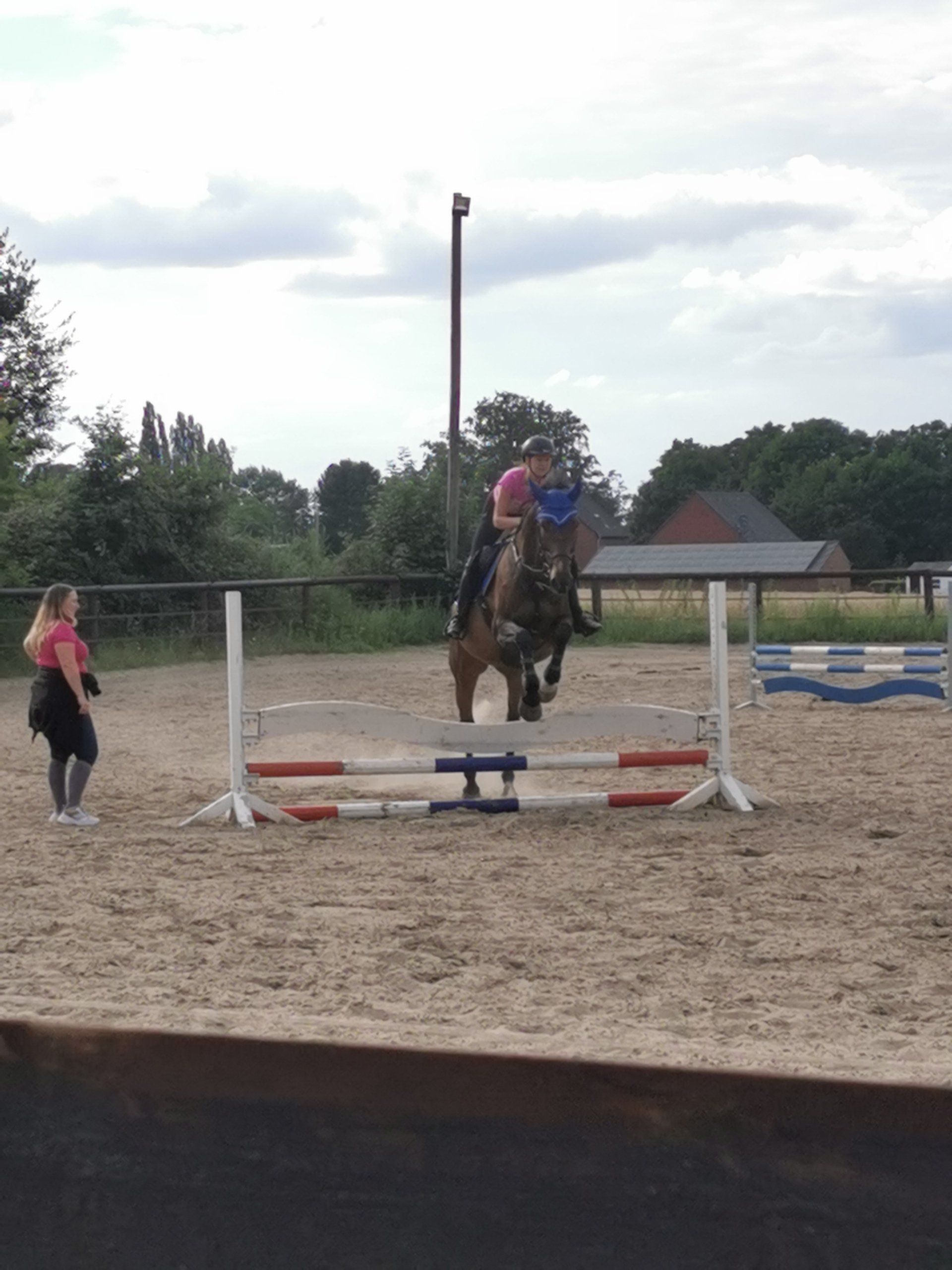 Je nach Wetterlage findet der Springunterricht in der Reithalle oder auf unserem Außenplatz statt.